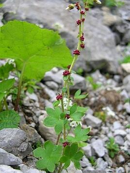 Wyłącznie na wapieniu rośnie również skalnica zwisła, którą odnaleźliśmy 7 lipca na piargach poniżej Zagonnego Żlebu (wysokość 1380 m n.p.m.). Gatunek ten występuje przede wszystkim wokół bieguna, a tylko nieliczne stanowiska znajdują się w Alpach i Tatrach (masyw Czerwonych Wierchów). Skalnica zwisła jest ciekawą rośliną, ponieważ kwitnie, ale nie wytwarza dojrzałych nasion. Rozmnaża się wegetatywnie, za pomocą bulwek umieszczonych w nasadach liści łodygowych i odziomkowych. Taki sposób rozmnażania, choć nieco ryzykowny, jest przejawem wysokiej specjalizacji. W ten sposób roślina dostosowuje się do specyficznych warunków, w których przyszło jej żyć. Rośnie głównie na wilgotnych piargach i żwirkach, a więc w miejscach bardzo niestabilnych. Podstawową zaletą tych miejsc jest niewielka konkurencja ze strony innych gatunków. Poważne zagrożenie stanowią natomiast spływy gruzowe oraz lawiny.